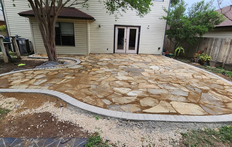 Stop looking at a patch of grass and start living in your backyard. This flagstone transformation takes you from "outdoor chore" to "outdoor oasis." Featuring custom-cut natural stone and a precision-laid masonry border, this patio is designed for morning coffees, weekend BBQs, and everything in between.